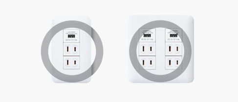 1連用コンセントプレートに取り付ける場合はUSBコンセントは1コまでとしてください。タテに